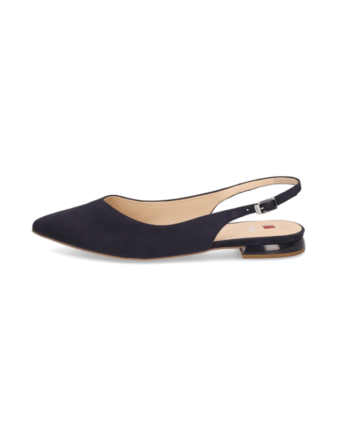 - Elegantes Design: Der offene Fersenbereich und der schmale Fersenriemen verleihen den Slingpumps eine schlanke Silhouette, die das Bein optisch streckt und in eine edle Form bringt.
