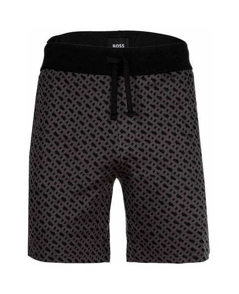 Kurzes Schlafanzug Set für Herren von der Marke BOSS. Relax Short Set mit kurzer gemusterter Hose und einfarbigem T-Shirt mit kleinem Logo Print.