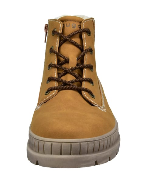 Diese lässigen Stiefel sind vollständig mit Fell gefüttert und für den Alltag in der Wintersaison unverzichtbar. Die leichten und stilvollen Herrenstiefel in Cognacbraun sind mit elastischen Schnürsenkeln ausgestattet, die das Tragen erleichtern. Ihre herausnehmbare Innensohle und die breite Stiefelform sorgen für maximalen Komfort und zusätzlichen Platz im Vorderfußbereich. Diese Winterstiefel sind mit einer robusten, klobigen Laufsohle ausgestattet, die mit Rillen verziert ist.