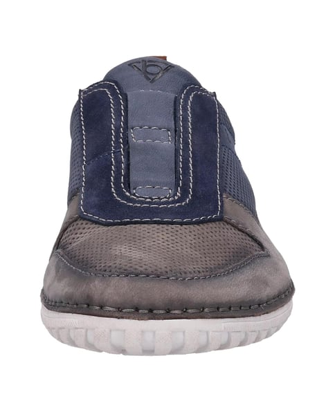 Gemütlich und luftig unterwegs - Der Slipper der Gruppe Camberra in Blau-Grau-Kombination mit cognacbraunem Akzent an der Ferse ist die perfekte Wahl für einen langen Tag im Freien. Der Schuh sorgt für Bequemlichkeit und Halt, während seine sportlichen Linien jedem Casual Outfit einen modischen Schliff verleihen.