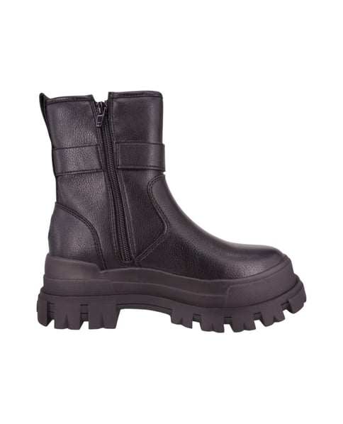 Die Stiefelette Aspha Bootie Buckle OS 1270117 aus dem Hause Buffalo im modischen Style. Das Obermaterial aus pflegeleichtem Lederimitat sowie das Innenmaterial aus Synthetik sorgen für perfekten und komfortablen Tragekomfort zu jeder Jahres und Tageszeit. Der Reißverschluss sorgt für den leichten Einstieg und setzt diese Stiefelette auch noch stilvoll in Szene. Die Stiefeletten haben einen Blockabsatz mit einer Höhe von 4 cm und eine Laufsohle aus Kunststoff. Die Buffalo Aspha Bootie Buckle OS sind absolut toll mit allem kombinierbar.