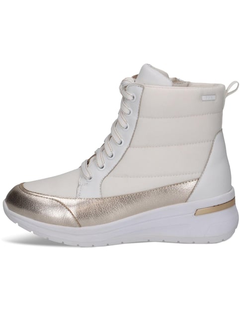 Genieße den Komfort und Stil der Damen Stiefelette von CAPRICE. Der Materialmix aus Leder und Textil sorgt für Qualität und Langlebigkeit, während die H-Weite für eine bequeme Passform sorgt. Die CAP Tex und CAP Airmotion Technologien bieten maximale Atmungsaktivität und Flexibilität. Dank des warmen Futters bleibst du auch an kalten Tagen warm. Der Reißverschluss und die Schnürung sorgen für einen sicheren Halt. Diese Stiefelette ist perfekt für den Alltag und lässt sich einfach zu verschiedenen Outfits kombinieren. Es ist an der Zeit, deinen Schuhschrank mit diesem vielseitigen und hochwertigen Stiefel zu ergänzen.