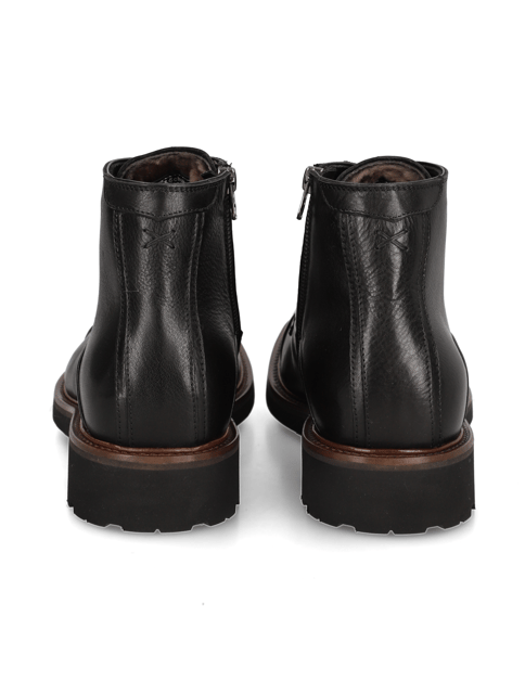 Die Schnürstiefelette von D.H.POLLAK vereint robuste Eleganz mit winterlichem Luxus. Gefertigt aus erstklassigem Glattleder und komplett mit echtem Lammfell ausgekleidet, steht dieser Stiefel für kompromisslose Qualität. Die durchgenähte Verarbeitung garantiert außergewöhnliche Haltbarkeit und Stabilität. Die Kombination aus klassischer Schnürung und praktischem Seitenreißverschluss ermöglicht schnelles Handling ohne Kompromisse bei der Passform. Das wärmende Lammfell-Innenfutter sorgt für behaglichen Komfort auch an kalten Tagen. Die markante Profilsohle mit kontrastierenden Elementen komplettiert diesen winterfesten Qualitätsschuh für Herren mit Anspruch.