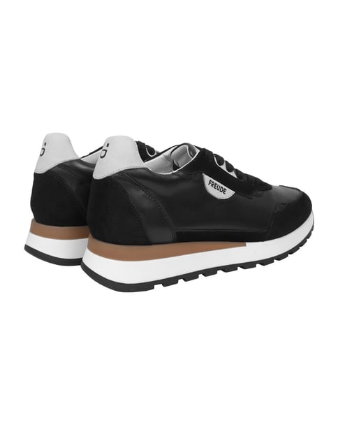 Der Sneaker AGATA ist ein Trendsetter. Hier werden Elemente des klassischen Turnschuhs mit Farbakzenten kombiniert. Das Obermaterial ist aus weichem Leder und Baumwolleinsätzen. Die Sohle von AGATA ist rutschfest und luftig-leicht: so fühlt sich jeder Spaziergang an wie auf Wolken. Ein optisches Goodie findet sich an der Seite des Turnschuhs, wo das FREUDE-Logo platziert wurde.