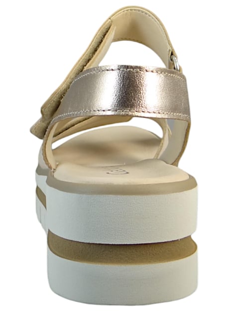 Die Sandalen Snake Keil F-Weite 44.620 aus dem Hause Gabor im modischen Style. Das Obermaterial aus pflegeleichtem echten Leder sowie das Innenmaterial aus Synthetik sorgen für perfekten und komfortablen Tragekomfort in der warmen Jahreszeit. Der Klettverschluss sorgt für den leichten Einstieg und setzt diese Schuhe auch noch stilvoll in Szene. Sie haben einen Keilabsatz mit einer Höhe von 4 cm und eine Laufsohle aus Gummi. Die Gabor Snake Keil F-Weite sind absolut toll mit allem kombinierbar.