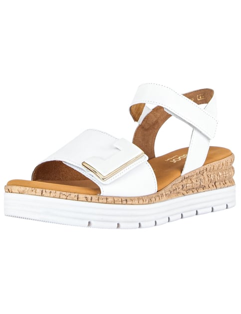 Die Sandalen G-Weite 62.700 aus dem Hause Gabor im modischen Style. Das Obermaterial aus pflegeleichtem echten Leder sowie das Innenmaterial aus Mikrofaser sorgen für perfekten und komfortablen Tragekomfort in der warmen Jahreszeit. Der Klettverschluss sorgt für den leichten Einstieg und setzt diese Schuhe auch noch stilvoll in Szene. Sie haben einen Keilabsatz mit einer Höhe von 3 cm und eine Laufsohle aus Gummi. Die Gabor G-Weite sind absolut toll mit allem kombinierbar.