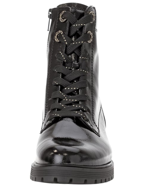 Die Stiefelette H-Weite 72.765 aus dem Hause Gabor im modischen Style. Das Obermaterial glänzendem Lacksynthetik sowie das Innenmaterial aus Mikrofaser sorgen für perfekten und komfortablen Tragekomfort zu jeder Jahres und Tageszeit. Der Schnürverschluss sorgt für den leichten Einstieg und setzt diese Stiefelette auch noch stilvoll in Szene. Die Stiefeletten haben einen Blockabsatz mit einer Höhe von 3 cm und eine Laufsohle aus Gummi. Die Gabor H-Weite sind absolut toll mit allem kombinierbar.