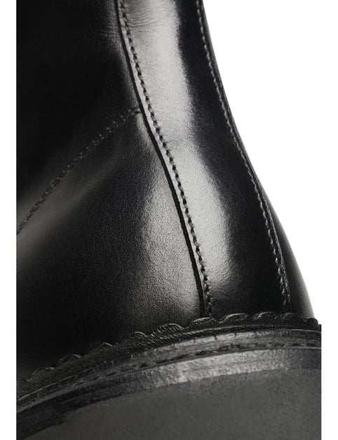 Anmutig, stabil und ausgesprochen bequem kommt das Modell Winston PDB1 von Henry Stevens daher. Die Berliner Schuhmarke richtet sich an alle Menschen, die ihr Stilbewusstsein neu interpretieren möchten. Die klassisch rahmengenähten Plain Derby Boots mit Triple Welt mit offener Schnürung in Schwarz sind das Erzeugnis eines jahrhundertealten Traditionshandwerks, welches eine anspruchsvolle Optik, höchsten Tragekomfort, außergewöhnliche Langlebigkeit und bei Bedarf eine leichte Reparatur garantiert. Handgefertigt aus feinstem Kalbsleder, handelt es sich bei dem Modell Winston PDB1 mit einer stabilen Gummiprofilsohle und aufwendigem Dreifachrahmen um einen atmungsaktiven Volllederschuh auf dem komfortablen Winston Leisten. Als klassische Herrenstiefel sind die Plain Derby Boots mit Triple Welt zweifellos die optimale Begleitung für eine Vielzahl an Looks. Ganz gleich, ob zu modernen Business-Outfits oder einer legeren Freizeitgarderobe – das Modell Winston PDB1 lässt sich vielfältig kombin