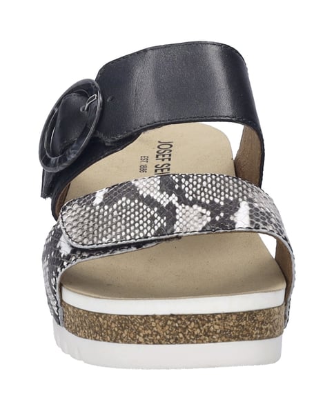 Mit dem Quinn 14 präsentiert JOSEF SEIBEL eine Sandale in schwarz-kombi, die Komfort und Eleganz für die Dame vereint. Gefertigt aus hochwertigem Lammleder, bietet dieser Schuh nicht nur eine exzellente Passform, sondern auch eine Haltbarkeit, die über die Saison hinausgeht. Die Sohle aus einer innovativen Kombination von TPR, PU und Kork garantiert Rutschfestigkeit und Flexibilität, während sie gleichzeitig leicht und nachhaltig ist. Dank des praktischen Klettverschlusses lässt sich der Schuh einfach an- und ausziehen. Die AGO-Fertigungsart, eine moderne Klebetechnik, sorgt für eine dauerhafte Verbindung von Obermaterial und Sohle, was den Quinn 14 zu einem langlebigen Begleiter macht. Ob für Freizeitaktivitäten im Freien oder als modisches Statement zur Sommergarderobe – dieser Schuh ist ein Paradebeispiel für modernen Komfort und nachhaltige Produktion, fernab von Fast Fashion. Ein echtes Highlight ist das Animal-Muster, das dem Schuh eine individuelle Note verleiht.