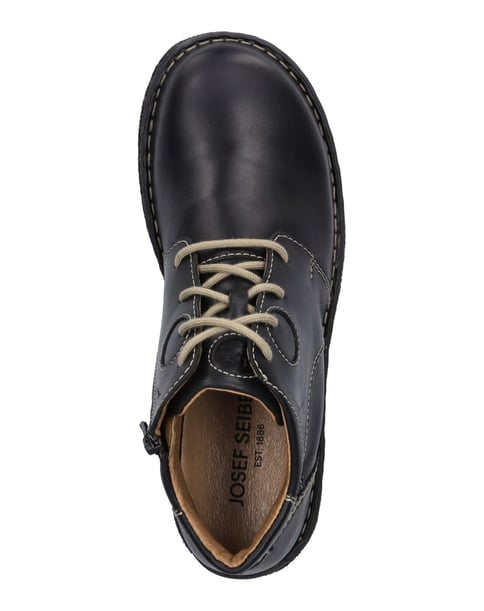 Entdecke die Quintessenz handwerklicher Schuhmacherkunst mit der Stiefelette Neele 46 von JOSEF SEIBEL. Geprägt von der Farbe Schwarz, verkörpert dieses Modell eine elegante Wahl für die Dame, die Wert auf Qualität und Wohlgefühl legt. Gefertigt aus feinstem Rindsleder, besticht die Oberfläche durch ihr Glattleder-Finish, das nicht nur optisch ansprechend, sondern auch langlebig ist. Die spezielle Handnaht, eine traditionelle Fertigungsart der deutschen Schuhindustrie, zeugt von der liebevollen Handarbeit und dem hohen Qualitätsanspruch, den JOSEF SEIBEL an jedes Paar Schuhe stellt. Dieses seltene Handwerk macht die Stiefelette zu einem echten Stück deutscher Industriekultur, dessen Authentizität und Erbe in jedem Schritt spürbar sind. Die Sohle aus TR (Thermoplastischer Kautschuk) bietet nicht nur eine gute Rutschfestigkeit und lange Haltbarkeit, sondern ist auch leichter als traditionelle Gummisohlen, was den Tragekomfort zusätzlich steigert. Der Reißverschluss erleichtert das An- un