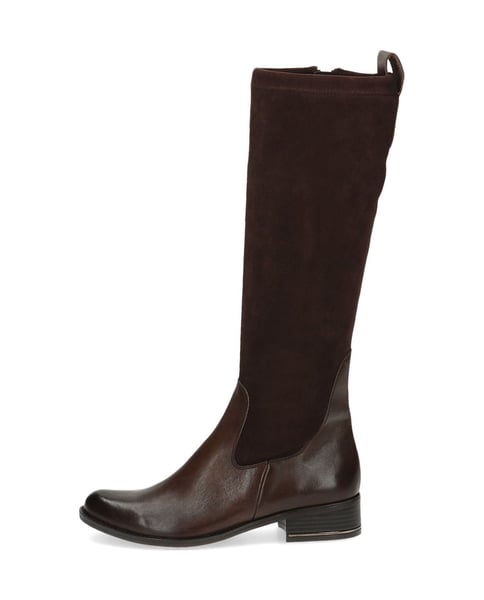 Dieser Kate Gray Cowboystiefel in sattem Braun setzt ein modisches Statement! Der kniehohe Stiefel aus hochwertigem Veloursleder vereint authentischen Western-Charme mit urbaner Eleganz. Die dezente Stickerei an der Schaftseite und der klassische V-Ausschnitt sorgen für den typischen Cowboy-Look, während der 6 cm hohe Block-Absatz für einen femininen Touch und angenehmen Tragekomfort sorgt. Der praktische Reißverschluss an der Innenseite macht das An- und Ausziehen besonders komfortabel. Ob zur Jeans, zum fließenden Kleid oder zur Lederhose – dieser vielseitige Westernstiefel ist der perfekte Begleiter für einen selbstbewussten, modernen Auftritt.