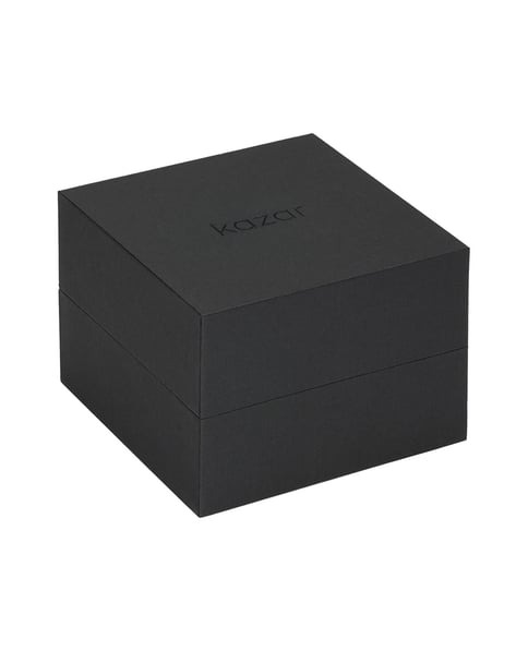 Die minimalistische Damenuhr in silberner Farbe ist ein elegantes und stilvolles Accessoire, das Schlichtheit und Raffinesse vereint. Sie ist aus hochwertigen Materialien gefertigt und zeichnet sich durch ein modernes Design und Liebe zum Detail aus. Das Armband mit großen Gliedern ist elegant und langlebig. Sein dezenter Glanz unterstreicht das schicke Aussehen und macht die Uhr sowohl für formelle als auch für legere Outfits geeignet. Das Zifferblatt der Uhr ist in einem minimalistischen Stil gehalten, der ihren modernen Charakter unterstreicht. Die Stundenindizes in Form von Kristallen sorgen für Glanz und ein luxuriöses Aussehen, während sie gleichzeitig einfach und klar gehalten sind. Die Kristalle reflektieren das Licht und setzen so einen auffälligen, aber subtilen Akzent. Der Ring der Uhr ist mit KAZAR-Monogrammen verziert.Die hier vorgestellte minimalistische Uhr ist eine ausgezeichnete Wahl für Frauen, die Klassiker mit einem modernen Touch schätzen. Die silberne Farbe, die k