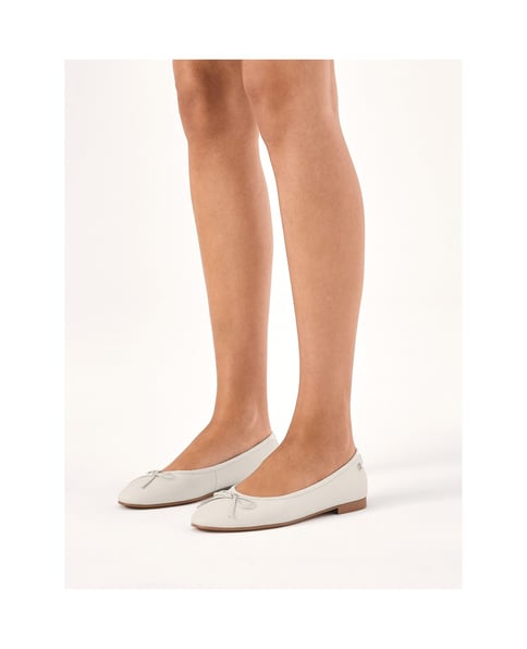 Weiße Ballerinas aus Naturleder sind ein charmantes und elegantes Modell, perfekt für wärmere Tage. Das minimalistische Design wird durch dezente Schleifen hervorgehoben, die einen zarten, femininen Touch verleihen. Die braune Sohle steht in interessantem Kontrast zum weißen Obermaterial und sorgt für angenehmen Tragekomfort. Dank ihrer klassischen Form und der sorgfältigen Verarbeitung sind diese Ballerinas sowohl für den Alltag als auch für formellere Anlässe eine ausgezeichnete Wahl und verbinden Komfort mit Eleganz.Das Innenfutter aus Semianilin-Schafsleder bietet dank seiner hervorragenden Feuchtigkeitsaufnahme einen außergewöhnlichen Komfort.Die Sohle besteht aus Thunfischleder, das sich durch seine Langlebigkeit und sein ästhetisches Aussehen auszeichnet.