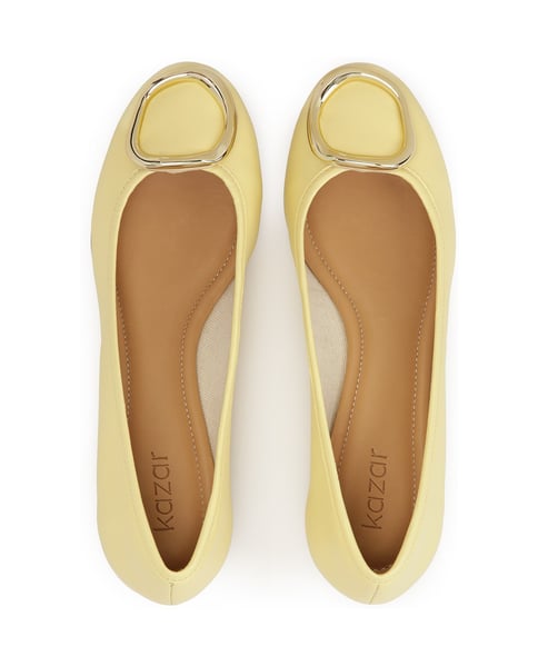 Dieleuchtend gelben Ballerinas aus hochwertigem Naturleder sind ein stilvolles und bequemes Accessoire, perfekt für warme Tage. Ihr weicher, pastellfarbener Butterton sorgt für Frische und Leichtigkeit, während die runde Schuhspitze den Schuhen einen klassischen, subtilen Look verleiht, der sowohl zu lässigen als auch zu eleganteren Outfits passt. Auf der Vorderseite der Ballerinas befindet sich ein metallisches Ornament in leuchtendem Gold, das einen luxuriösen und eleganten Touch verleiht. Das Ornament ist dezent, aber auffällig und bildet einen schönen Kontrast zu dem leuchtend gelben Leder. Diese Ballerinas sind die perfekte Kombination aus bequem und schick, ideal für das Tragen den ganzen Tag.Das Innenfutter aus Semianilin-Schafsleder mit seinen hervorragenden feuchtigkeitsabsorbierenden Eigenschaften sorgt für außergewöhnlichen Komfort.