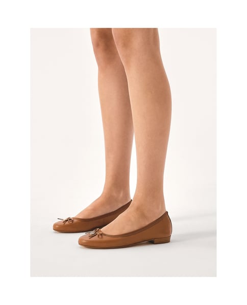 Hellbraune bequeme Lederballerinas