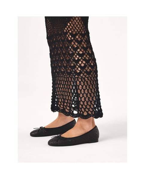 Schwarze Ballerinas aus hochwertigem Naturleder sind ein elegantes und dezentes Schuhwerk, das Komfort mit anspruchsvollem Design verbindet. Sie haben eine flache Sohle, die Komfort für das tägliche Tragen bietet, und ihre klassische runde Nase, die mit einer zarten Schleife verziert ist, verleiht ihnen Charme und femininen Reiz. Das Obermaterial der Ballerinas ist mit einem aufwändig geschnittenen durchbrochenen Muster verziert, das den Schuhen Leichtigkeit und einen einzigartigen Stil verleiht und mit subtilen Details die Aufmerksamkeit auf sich zieht. Die vorgestellten Ballerinas sind eine ausgezeichnete Wahl für das tägliche Styling, das eine Kombination aus Klassik, Eleganz und Komfort erfordert.Das mit Schafsfell gepolsterte Innere des Schuhs garantiert hygienische Bedingungen und hohen Komfort.Die Sohle ist aus Thunfischleder gefertigt, das sich durch Langlebigkeit und Ästhetik auszeichnet.