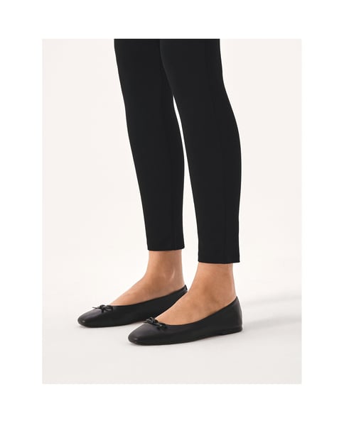 Schwarze klassische Ballerinas sind der Inbegriff von zeitloser Eleganz und Vielseitigkeit. Sorgfältig entworfen, verbinden sie minimalistisches Design mit höchster Qualität, was sie zu einem unverzichtbaren Teil des Kleiderschranks jeder Frau macht. Aus weichem Naturleder gefertigt, passen sie sich der Form des Fußes perfekt an und bieten auch bei langem Tragen Komfort und Haltbarkeit. Der schlichte Schnitt verleiht ihnen eine außergewöhnliche Vielseitigkeit, so dass sie sich sowohl für den Alltag als auch für formelle Anlässe eignen. Eine charmante, subtile Schleife auf der Vorderseite des Schafts verleiht ihnen Zartheit und femininen Charme, ohne ihren klassischen Charakter zu überdecken. Die flache Sohle und die abgerundete Schuhspitze sorgen für ganztägigen Tragekomfort.Das Futter aus weichem Semianilin-Schafsleder, das sich durch eine hervorragende Feuchtigkeitsaufnahme auszeichnet, garantiert ein hohes Maß an Komfort.