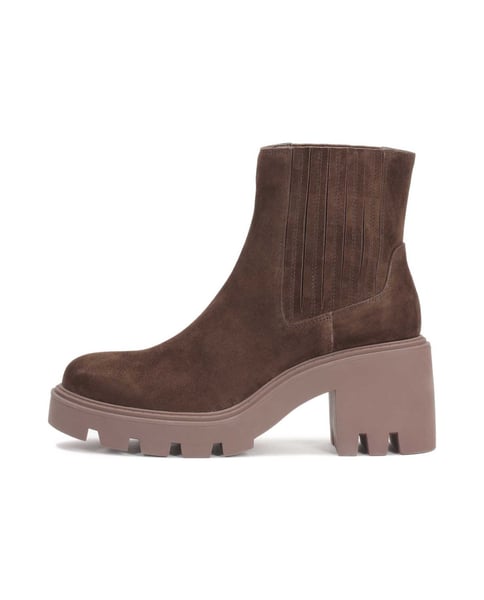 Trendige flache Damenstiefeletten aus hochwertigem Veloursleder in edlem Braunton fallen durch ihren elastischen Einsatz aus gestreiftem Stoff und die dicke Ferse und Sohle auf. Der Schaft zum Hineinschlüpfen ist besonders bequem und liegt schön am Bein an. Die massive Sohle und der Absatz machen sich an kälteren Tagen gut, denn sie isolieren die Füße perfekt. Die schwarzen, flachen Stiefeletten sind das Basiselement lässiger Outfits und dürfen in der Garderobe jeder stilvollen Frau nicht fehlen.Das Innenfutter aus Semianilin-Schafsleder sorgt dank seiner hervorragenden feuchtigkeitsabsorbierenden Eigenschaften für einen hohen Tragekomfort.