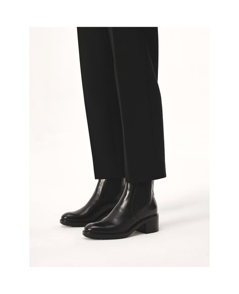 Schwarze Stiefel sind bequeme und stilvolle Schuhe, ideal für den Alltag. Eine Besonderheit dieser Stiefel sind die elastischen Gummieinsätze, die nicht nur ein einfaches An- und Ausziehen ermöglichen, sondern auch für eine perfekte Passform am Fuß sorgen. Der niedrige, breite Absatz garantiert Stabilität und Komfort beim Gehen und macht diese Stiefel auch bei längerem Tragen bequem. Aus hochwertigem Naturleder gefertigt, vereinen sie Strapazierfähigkeit mit einem eleganten Look und passen durch ihre vielseitige schwarze Farbe zu einer Vielzahl von Outfits. Sie sind eine ausgezeichnete Wahl für Frauen, die eine modische und zugleich praktische Lösung für kältere Tage suchen.Das weiche Semianilin-Schafslederfutter ist weich und absorbiert perfekt die Feuchtigkeit.