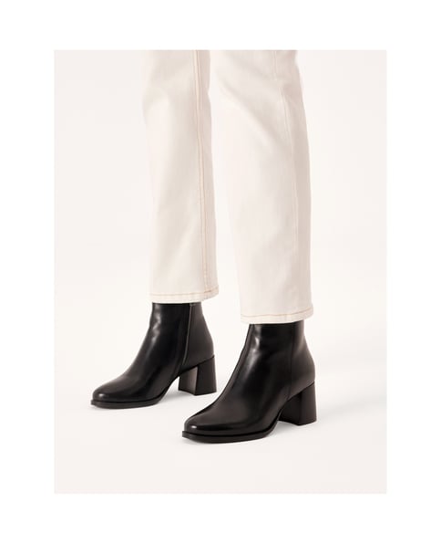 Booties mit knöchellangem Schaft auf einem breiten Absatz sind ein praktischer Schnitt, der in den Kleiderschrank jeder Frau gehören sollte. Das Obermaterial aus Vollnarbenleder ist einfach geschnitten, ohne unnötige Verzierungen und wirkt anmutig und dezent am Bein. Die universelle schwarze Farbe ermöglicht es Ihnen, die Schuhe zu vielen Stylings zu kombinieren.Das Futter aus weichem Semianilin-Schafsleder garantiert hohen Komfort.