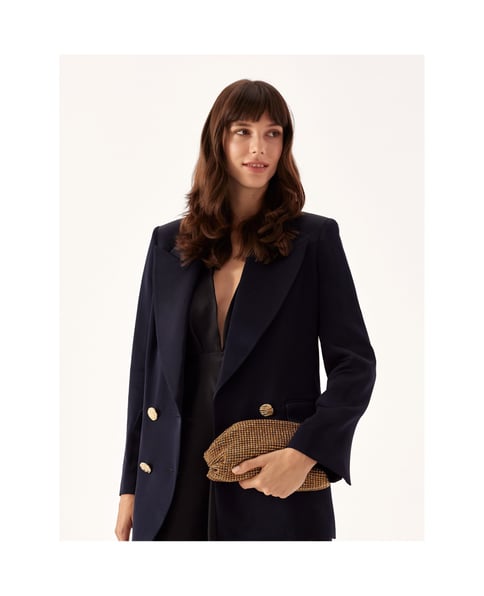 Der Beutel, den man in der Hand hält, hat einen Metallrahmen, der seine Form definiert und als Verschluss dient. Das charmante Modell mit lockerem Schnitt ist mit goldenen Zirkonen besetzt, die einen Glüheffekt erzeugen. Eine reich verzierte Handtasche genügt, um dem ganzen Styling einen luxuriösen, eleganten Charakter zu verleihen.Produkt-Details:Die Handtasche hat 1 Fach, das mit einem Metallrahmen geschlossen wird.Innen befindet sich 1 offenes Fach.