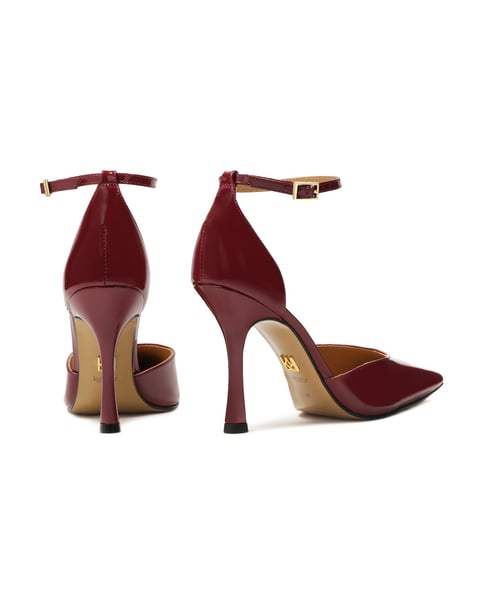 Einzigartige rote Pumps aus glänzendem Lackleder sind der Inbegriff von weiblicher Eleganz und Schick. Das Modell zeichnet sich durch ein halboffenes Obermaterial aus, das den Fuß subtil enthüllt und dank des integrierten Absatzes einen klassischen Charakter bewahrt. Die schlanke, spitze Schuhspitze verleiht den Schuhen Raffinesse und verschlankt optisch die Silhouette. Geschlossen werden die Schuhe mit einem zarten Riemchen um den Knöchel, das nicht nur die raffinierte Optik unterstreicht, sondern auch für einen sicheren und stabilen Sitz sorgt. Der hohe, schlanke Absatz sorgt für Eleganz und streckt die Beine, was das Modell zu einer idealen Wahl für besondere Anlässe macht. Die hier vorgestellten Pumps sind das perfekte Accessoire für Frauen, die Stil, Kühnheit und die zeitlosen Klassiker in einer aufgefrischten Version schätzen.Das Futter aus weichem Semianilin-Schafsleder, das sich durch eine hervorragende Feuchtigkeitsaufnahme auszeichnet, garantiert einen hohen Tragekomfort.Die