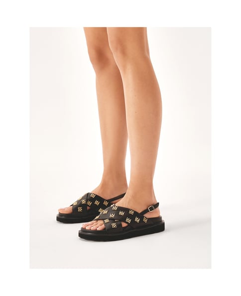 Flache Sandalen mit Metallmonogrammen ve
