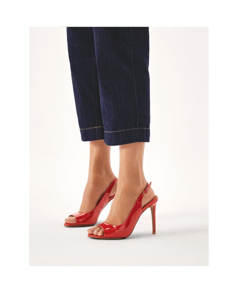 Rote Lackleder-Sandalen mit Knöchelrieme