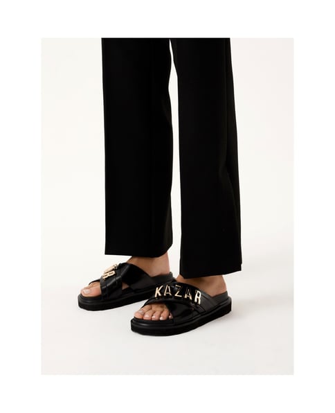 Die schwarzen Damen-Pantoletten aus hochwertigem , genarbtem Leder sind klassisch und zeitlos geschnitten und haben eine dicke, geschichtete Sohle. Die breiten, sich kreuzenden Riemen geben dem Fuß perfekten Halt und verhindern, dass er aus dem Schuh rutscht. Leicht, luftig und bequem, ist das Schuhwerk perfekt für heiße Tage. Die zeitlosen Pantoletten in einer vielseitigen Farbe sind ein Must-Have zu vielen Outfits.Die profilierte Sohle garantiert hohen Tragekomfort.