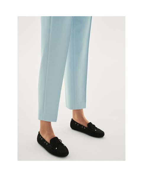 Schwarze Mokassins für Damen aus hochwertigem Nubuk, ein äußerst klassisches Modell und eine universelle Farbgebung, die sie ideal zur Ergänzung der meisten Stylings macht.Das Futter aus Schafsleder, das extrem weich ist, sorgt für Ihren Komfort beim Gehen.