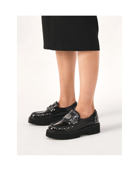 Lederschuhe mit einem mit silbernen Metallnieten verzierten Schaft sind die Quintessenz moderner Eleganz mit einem Hauch von Rock. Sie sind aus hochwertigem Naturleder gefertigt und vereinen Strapazierfähigkeit und einen raffinierten Look. Das mit symmetrisch angeordneten silbernen Nieten verzierte Obermaterial verleiht ihnen einen einzigartigen Glanz und einen Hauch von Strenge und passt perfekt zu einer Vielzahl von Stilen. Für den Tragekomfort sorgt eine wohlgeformte Sohle, die sowohl elegant als auch praktisch ist. Die genieteten Lederschuhe sind eine ausgezeichnete Wahl für alle, die einen modischen, originellen Look in Kombination mit Komfort und Haltbarkeit schätzen. Das Innere des Schuhs ist mit weichem semianilinen Ziegenleder gepolstert und garantiert hygienische Bedingungen und hohen Komfort.