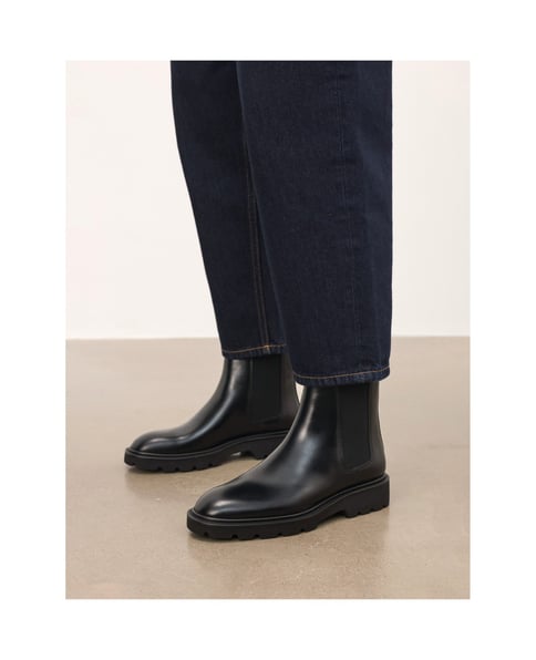 Die schwarzen Chelsea-Boots sind ein zeitloses Modell, das Klassiker mit Alltagskomfort verbindet. Sie sind aus hochwertigem Naturleder gefertigt und zeichnen sich durch ihr elegantes, minimalistisches Design und ihre Langlebigkeit aus. Die charakteristischen elastischen Einsätze an den Seiten erleichtern das Anziehen und die Passform und unterstreichen gleichzeitig den typischen Stil dieses Schnitts. Das Modell steht auf einer flachen Sohle mit Profil, die hervorragenden Halt und Stabilität auf verschiedenen Untergründen bietet. Ein vielseitiger Schuh, der sowohl zu legeren als auch zu eleganteren Outfits passt und somit eine ideale Wahl für den Alltag in der Herbst-Winter-Saison ist.Das Innenfutter aus Semianilin-Schafsleder mit seinen hervorragenden feuchtigkeitsabsorbierenden Eigenschaften sorgt für außergewöhnlichen Komfort.