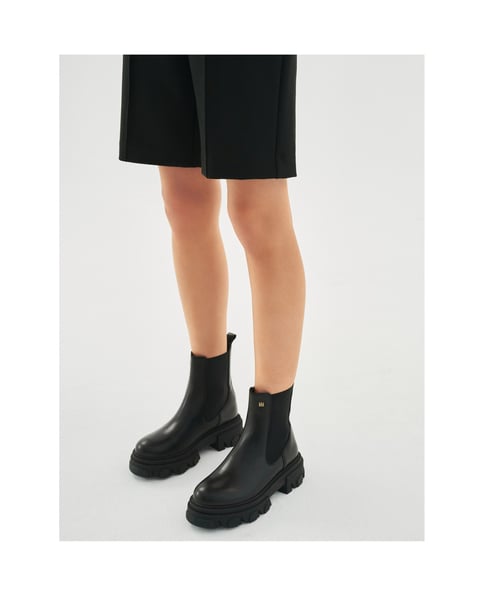 DieDamen-Schlupfstiefel mit dicker Sohle sind ein Topmodell, das lässige Stylings perfekt unterstreicht. Das Obermaterial aus hochwertigem Vollnarbenleder, das bis hinter den Knöchel reicht, ist mit elastischen Einsätzen versehen, dank denen das Anziehen der Schuhe einfach und bequem ist. Die Aufmerksamkeit wird von der massiven Sohle mit interessantem Design auf sich gezogen, die das Ganze vervollständigt.Das Futter aus weichem Semianilin-Ziegenleder garantiert einen hohen Tragekomfort.