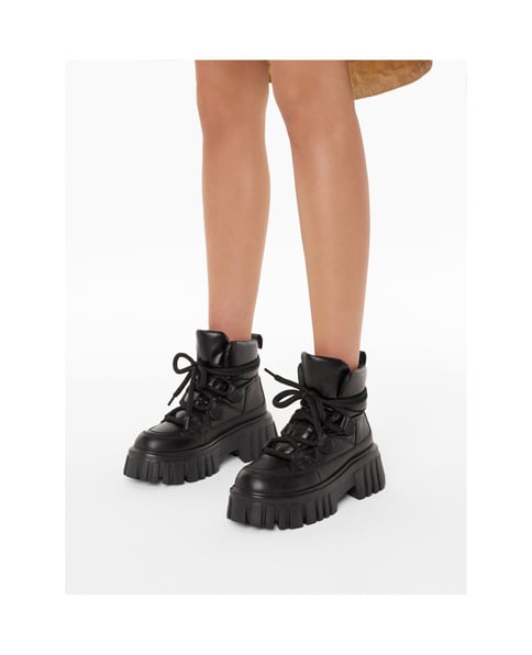 Schwarze Stiefel für Damen verleihen jedem Outfit einen modischen und originellen Charakter. Das Obermaterial besteht aus echtem Narbenleder und bauschigem Stoff, der unglaubliche Weichheit garantiert. Der Komfort wird durch die Schnürsenkel erhöht, mit denen der Schuh an die Fußform angepasst werden kann, sowie durch eine feste Sohle, die die Füße vor Kälte schützt. Jetzt sind Sie frei, um die Stadt zu durchstreifen.