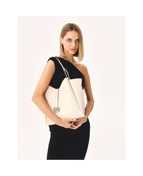 Die cremefarbene Shopper-Tasche aus hochwertigem Naturleder ist eine elegante und funktionelle Wahl für alle, die Stil und Fassungsvermögen zu schätzen wissen. Die Tasche verfügt über ein geräumiges Hauptfach, das sich ideal für den täglichen Einkauf oder das Pendeln eignet, und hat als Besonderheit eine abnehmbare Tasche mit Reißverschluss. In diesem Fach lassen sich kleine Gegenstände wie Schlüssel, Telefon oder Brieftasche leicht verstauen, und es bietet zusätzlichen Schutz für Ihre wertvollsten Habseligkeiten. Die Griffe der Tasche sind originell eingenäht, was ihr einen einzigartigen Charakter verleiht und ein bequemes Tragen ermöglicht. Ein dekorativer Akzent ist der mit dem KAZAR-Monogramm versehene Riemen, der den raffinierten Stil der Tasche unterstreicht. Die cremefarbene Shopper-Tasche ist eine ideale Wahl für jeden Anlass - sie verbindet minimalistische Eleganz mit funktionellem Design.Einzelheiten zum Produkt:Die Tasche hat 1 Hauptfach ohne Verschluss, in dem sich 1 Reißve