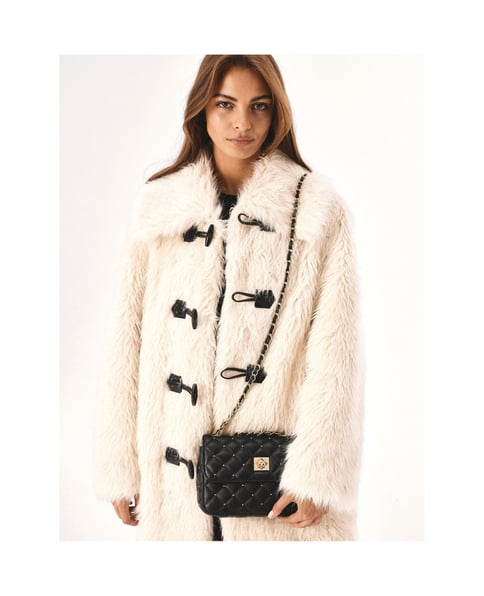 Dieschwarze Handtasche aus hochwertigem Naturleder ist klassisch geschnitten und mit einer modischen Steppung und goldenen Strasssteinen verziert, die dezent glänzen und die Blicke auf sich ziehen und jedem Styling Glamour verleihen. Ein dekorativer Drehverschluss mit dem KAZAR-Monogramm und eine mit Leder verflochtene Kette heben sich schön vom schwarzen Leder ab. Kompakte Abmessungen und ein funktionelles Innenleben machen die Tasche sehr praktisch.Einzelheiten zum Produkt:Die Handtasche hat 1 Fach, das mit einem Reißverschluss geschlossen wird, und eine Klappe mit Drehverschluss.Im Inneren befinden sich 1 Fach mit Reißverschluss und 1 offenes Fach.Auf der Rückseite der Handtasche befindet sich 1 offenes Fach.Der mit einer goldenen Kette verflochtene Lederriemen ist verschiebbar, nicht abnehmbar und nicht in der Länge verstellbar.