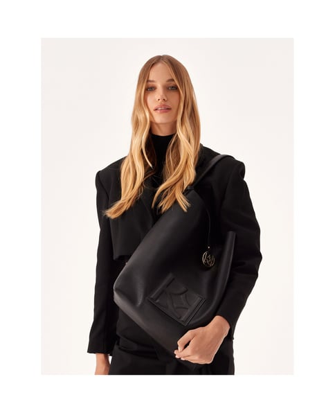 DieHandtasche aus hochwertigem, genarbtem Leder in der vielseitigen Farbe Schwarz ist eine perfekte Ergänzung zu einem originellen Styling. Ihr zeitloser Schnitt und ihre Farbgebung machen sie immer zu einer attraktiven Ergänzung des Stylings. Der Schnitt ist mit Henkeln in optimaler Länge ausgestattet, so dass man die Tasche auch über der Schulter tragen kann. Der Vorteil dieses Modells ist ein herausnehmbarer Innenbeutel, so dass Sie den gesamten Inhalt in eine andere Tasche umfüllen können.Einzelheiten zum Produkt:Großes Fach mit einer kleinen Tasche, die sich mit einem Magnetverschluss schließen lässt.Innen eine herausnehmbare Tasche mit Reißverschluss mit den Maßen 29x30x15,5 cm, in der sich 1 offenes Fach und 1 Fach mit Reißverschluss befinden.Eine weitere offene Tasche befindet sich auf der Vorderseite der Tasche.
