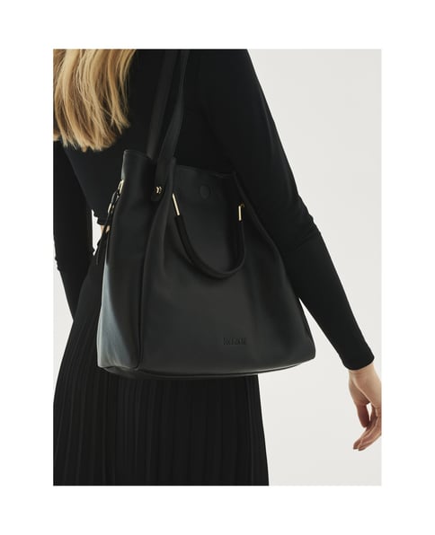 Die schwarze Damentasche aus hochwertigem , genarbtem Leder bietet dank ihrer Größe Platz für all Ihre notwendigen Dinge und sogar für Dokumente. Die originelle Lösung ist ein abnehmbares, herausnehmbares Fach, das als Schminktasche verwendet werden kann.Die Damentasche verfügt über:2 Arten von Griffen,3 Fächer, davon 1 Reißverschlussfach,2 offene Fächer und 1 Reißverschlussfach im mittleren Fach.