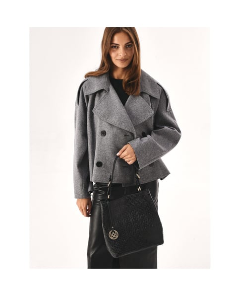 Die geräumige Lederhandtasche ist eine ausgezeichnete Wahl für alle, die eine elegante und zugleich funktionale Option für den täglichen Gebrauch und besondere Anlässe suchen. Die Tasche hat eine steife Konstruktion, die ihre Form auch im leeren Zustand beibehält, und ein verstärkter Boden sorgt für zusätzliche Haltbarkeit und Stabilität. Sie ist aus hochwertigem Naturleder gefertigt, das mit einem geprägten Muster mit Monogrammen verziert ist, was ihr einen einzigartigen Charakter und ein repräsentatives Aussehen verleiht. Die Tasche ist mit zwei Arten von Riemen ausgestattet: einem kürzeren Riemen zum Tragen in der Hand, der ihr Eleganz und Klasse verleiht, und einem längeren, verstellbaren Schulterriemen, der für mehr Komfort sorgt und es Ihnen ermöglicht, die Tasche je nach Bedarf und Situation auf unterschiedliche Weise zu tragen.Einzelheiten zum Produkt:Die Handtasche hat 3 Fächer: 2 mit einem Magnetverschluss und 1 mit einem Reißverschluss.Im vorderen Fach befinden sich 2 offene