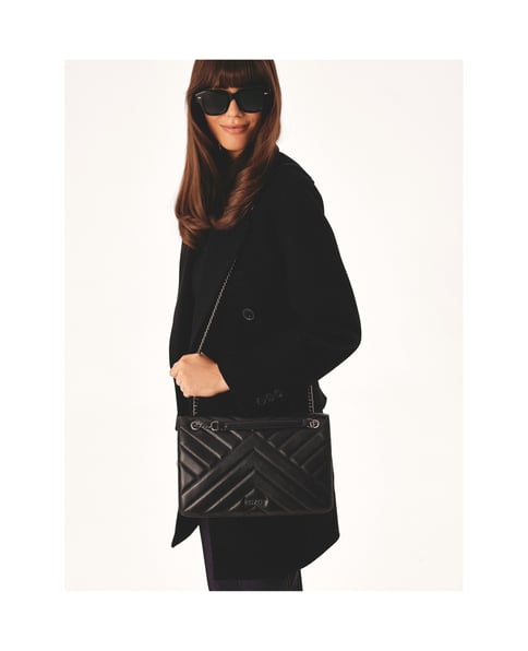 Eine schwarze Handtasche, die an einer mit einem Lederriemen verflochtenen Kette hängt, ist ein modisches Accessoire, das sich von der Masse abhebt. Ihr elegantes Design und die sorgfältige Verarbeitung machen sie zu einem absoluten Schmuckstück unter den Accessoires. Die Tasche ist aus hochwertigem Naturleder gefertigt, das mit einem schönen Muster bestickt ist, und sieht einzigartig und elegant aus. Die große Klappe trägt nicht nur zu ihrem Charakter bei, sondern schützt auch das Innere vor möglichem Schmutz und Verlust des Inhalts. Die mit einem Lederriemen verflochtene Kette sorgt für bequemen und stabilen Tragekomfort.Einzelheiten zum Produkt:Die Tasche hat 1 Fach, das mit einer Klappe mit Magnetverschluss geschlossen wird.Im Inneren befinden sich 3 offene Fächer, 1 Reißverschlussfach und 1 offenes Fach.Auf der Rückseite der Tasche befindet sich 1 offenes Fach.Die Kette ist nicht abnehmbar, aber verschiebbar. Sie kann zu einem langen Henkel für die Schulter oder zu zwei Henkeln zu