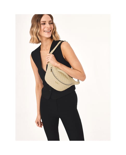 Diebeigefarbene Niere aus hochwertigem Leder mit dezenter KAZAR-Monogramm-Prägung präsentiert einen luxuriösen und zugleich praktischen Stil. Charakteristisch für diese Niere ist ihr zartes, geprägtes Design, das ihr einen eleganten und prestigeträchtigen Look verleiht. Sie verfügt über einen abnehmbaren, verstellbaren Riemen, mit dem sie sich an verschiedene Stile und Trageweisen anpassen lässt - sowohl um die Hüfte als auch um die Schulter. Das Hauptfach ist mit einem Reißverschluss versehen, was die Sicherheit und die Bequemlichkeit der Benutzung gewährleistet und gleichzeitig das Risiko des Verlusts von Gegenständen minimiert. Ideal für alltägliche, modische Outfits.Produkt-Details:Die Nierentasche hat 1 Fach, das mit einem Reißverschluss geschlossen wird.Im Inneren befindet sich 1 offenes Fach und 1 Fach mit Reißverschluss.Auf der Rückseite der Niere befindet sich 1 Tasche mit Reißverschluss.Der Leder-Kettenriemen ist abnehmbar und verstellbar.