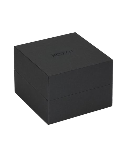 Die dunkle Herrenuhr strahlt Klasse und Raffinesse aus. Das Zifferblatt und das Armband aus massivem Rotguss-Edelstahl sind die perfekte Ergänzung zum schwarzen Zifferblatt. Die Kombination aus matten und glänzenden Gliedern des Armbands verleiht der Uhr ihre Originalität. In puncto Funktionalität ist diese Uhr äußerst vielseitig. Der Chronograph ermöglicht eine präzise Zeitmessung, die sich sowohl für sportliche Aktivitäten als auch für den täglichen Gebrauch eignet. Die Datumsanzeige auf dem Zifferblatt macht es zudem einfach, das aktuelle Datum im Auge zu behalten, was äußerst praktisch ist. Die vorgestellte Uhr ist eine ausgezeichnete Wahl für Männer, die klassischen Stil und Zuverlässigkeit schätzen.Die Wasserdichtigkeit der Uhr in Höhe von 10 bar erlaubt es Ihnen, das Modell auch in Kontakt mit Wasser zu benutzen.Alle KAZAR-Uhren verfügen über ein japanisches Quarzwerk, das sich durch extreme Genauigkeit und Langlebigkeit auszeichnet.Der maximale Umfang des Armbandes mit Dornschl