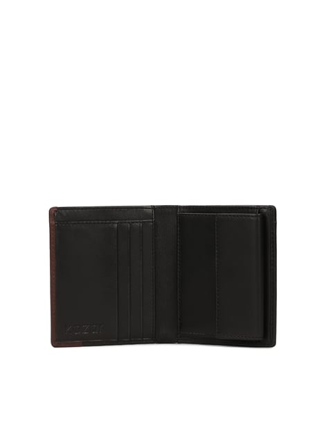 Das Portemonnaie aus Naturleder in Schwarz besticht durch seine Eleganz und sein dezentes Design. Auf der Vorderseite des Portemonnaies befindet sich ein Einsatz aus braunem Leder, auf dem das KAZAR Markenlogo elegant eingeprägt ist. Das klassische und schlichte Modell bietet Platz für alle wichtigen Utensilien, ohne viel Platz in der Tasche zu beanspruchen. Im Inneren des Portemonnaies finden Sie zwei Fächer für Geldscheine. Die eine Hälfte ist mit einem Schnappverschlussfach für Kleingeld ausgestattet, während die andere Hälfte drei Fächer für Karten hat. Ein ideales Accessoire für den Alltag, das sich auch hervorragend als Geschenk eignet.Das RFID-fähige Portemonnaie bietet zusätzlichen Schutz gegen den Diebstahl von Zahlungs- und Ausweisdaten und bewahrt persönliche Informationen vor unbefugtem Zugriff.