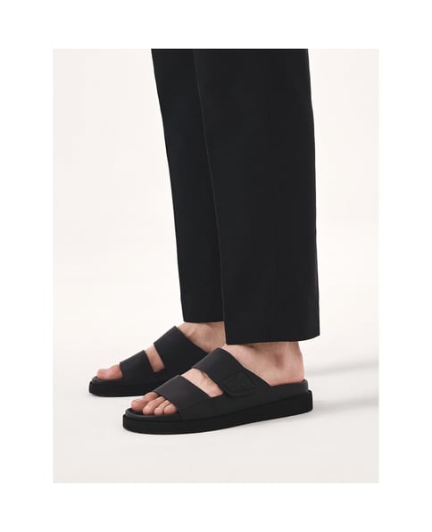 Schwarze Herren-Slides aus hochwertigem Gummileder mit mattem Finish sind eine stilvolle und moderne Wahl für den Sommer. Ihr minimalistisches Design basiert auf zwei breiten Riemen, von denen einer mit Klettverschluss für eine individuelle Passform und Komfort verstellbar ist. Die matte Oberfläche verleiht den Pantoletten Eleganz und subtile Raffinesse. Die dicke Sohle sorgt für eine gute Dämpfung und Unterstützung, so dass die Pantoletten auch bei längerem Tragen bequem sind. Auf einem der Riemen ist ein KAZAR-Monogramm eingeprägt, das den prestigeträchtigen Charakter dezent unterstreicht. Die Pantoletten eignen sich perfekt für das sommerliche Styling, sowohl für den Alltag als auch für legerere Kombinationen. Sie vereinen Funktionalität, Langlebigkeit und elegantes Design.