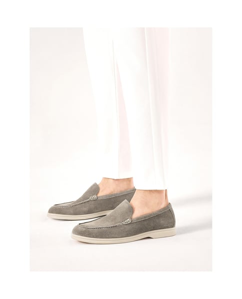Klassische Slipper für Herren aushochwertigem Wildleder verbinden universellen Einsatz mit hohem Tragekomfort. Das taupefarbene Obermaterial, das mit den für Mokassins typischen Nähten auf der Nase verziert ist, passt sich perfekt an den Fuß an, während die flexible Sohle für Komfort beim Gehen sorgt. Leicht, elegant und vor allem einfach an- und auszuziehen, sind diese Schuhe eine willkommene Ergänzung zu jedem Outfit.Das Futter aus Schafsleder sorgt für außergewöhnlichen Komfort.