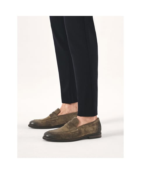 Die khakifarbenenLoafers sind eine stilvolle Kombination aus Klassikern und modernen Details. Sie sind aus weichem Wildleder gefertigt und sehen sehr attraktiv aus. Die geschichtete Sohle und der Absatz sorgen für Komfort und Robustheit, während das auffällig aufgeriebene Wildleder an den Zehen und Fersen einen modischen, einzigartigen Touch verleiht. Er ist die ideale Wahl für Männer, die einen zeitlosen Stil mit einem Hauch von Frische zu schätzen wissen, und passt sowohl zu legeren als auch zu halb-formellen Kombinationen.Mit weichem Schaffell gefüttert, passt er sich der Form des Fußes an und sorgt für ein angenehmes Tragegefühl.