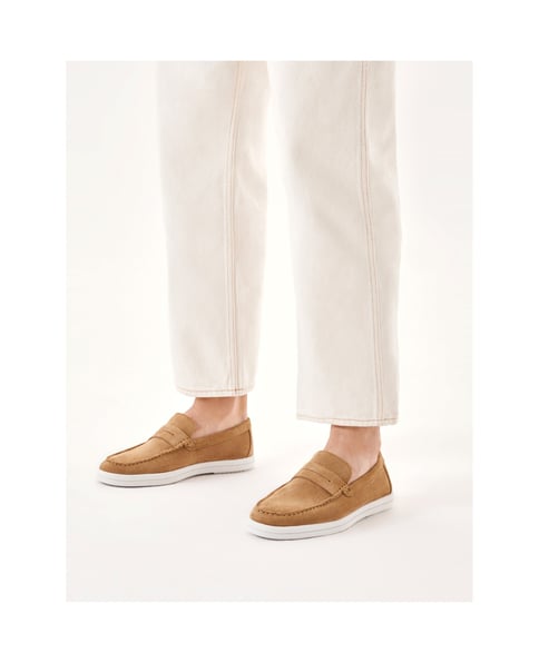 DieHerren-Slipper sind ein interessanter Vorschlag für Männer, die bequeme Alltagsschuhe suchen, die ihnen gleichzeitig einen tadellosen und stilvollen Look verleihen. Das Obermaterial aus Wildleder hat einen Schnitt, der an Loafer erinnert, während die kontrastierende Sohle an bequeme Sneaker erinnert. Die Kombination der beiden Stile macht die Schuhe zu einer perfekten Ergänzung für eine Vielzahl von Outfits. Sie lassen sich gut mit Shorts, Jeans und Chino-Hosen kombinieren. Das mit feinem Schafsleder gefütterte Innenleben des Schuhs garantiert hygienische Bedingungen und hohen Tragekomfort.