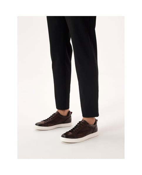 Braune Leder-Sneakers mit weißer Sohle