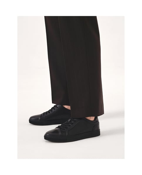 Klassische Sneaker für Männer im minimalistischen Stil sind die perfekte Basis für lässige Outfits. Das geschnürte Obermaterial aus genarbtem Leder hat eine dezente, hervorstehende Verzierung, die die schlanke Linie des Schuhs betont. Die Schlichtheit dieses Modells wird Menschen ansprechen, die bescheidenes Schuhwerk von ausgezeichneter Qualität schätzen. Schwarze Turnschuhe sind zeitlos und ein unverzichtbares Element der männlichen Garderobe.Das mit Schafsleder gefütterte Innere des Schuhs garantiert hygienische Bedingungen und hohen Tragekomfort.