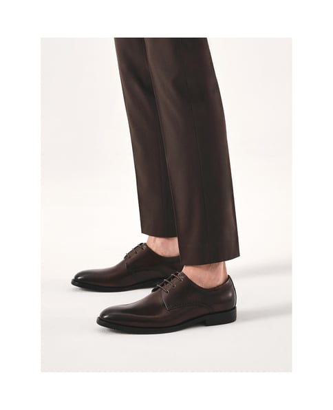 Elegante Herrenschuhe aus hochwertigem Naturleder sind eine klassische Wahl für Männer, die Stil und Komfort schätzen. Die braune Farbe ist vielseitig und passt sowohl zu marineblauen, grauen und beigen Anzügen und bietet eine Alternative zum klassischen Schwarz. Die Schuhe haben eine schlanke, raffinierte Form, die gut zu formellen Outfits wie einem Anzug passt. Das Obermaterial ist dezent mit zarten Perforationen verziert, die dem Schuh einen leichten und einzigartigen Touch verleihen und gleichzeitig für einen eleganten, formellen Look sorgen. Die offene Zehenpartie sorgt für mehr Komfort, insbesondere bei breiteren Füßen. Das Ganze wird von einer schlanken Sohle mit einem eleganten Absatz unterstützt, der für Stabilität und eine gute Haltung sorgt. Die vorgestellten Schuhe sind eine ausgezeichnete Wahl für alle formellen Anlässe und bieten eine Kombination aus klassischer Eleganz und Tragekomfort.Das mit Naturleder gefütterte Innere des Schuhs garantiert hygienische Bedingungen und